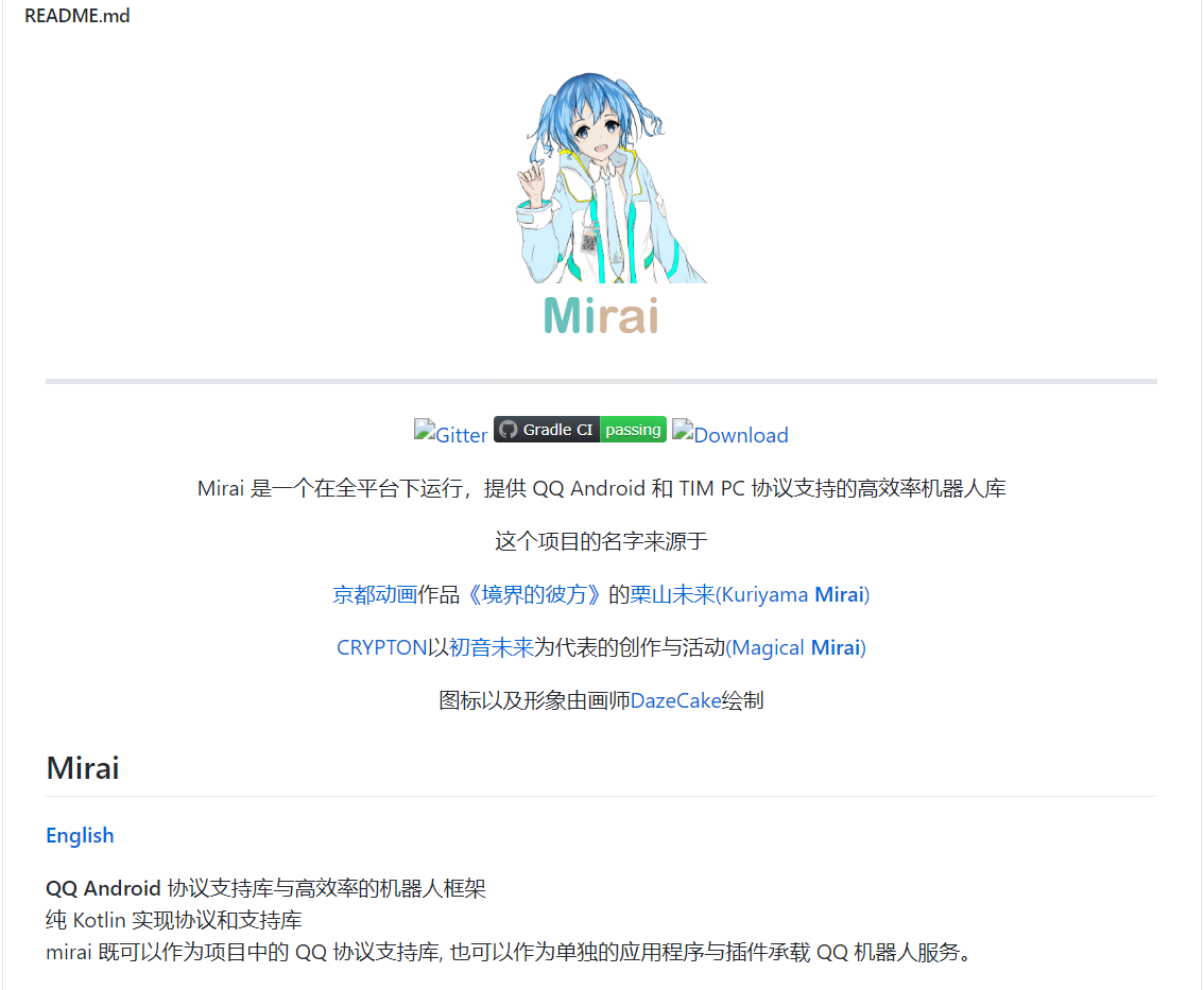 前言 2020-08-04 更新:由于腾讯封禁第三方机器人,mirai项目有可能会被关闭或停止更新(市面上大部分机器人都跑路了),且用且珍惜吧~
