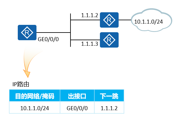 - 添加一条去往20.1.1.3的路由,下一跳为直连网络内的IP地址10.0.0.2。