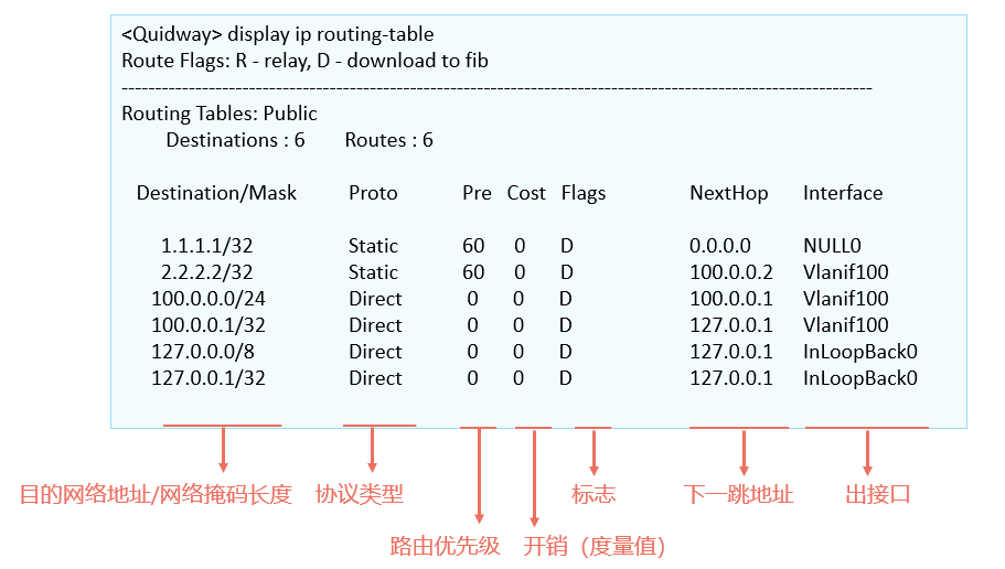 Destination/Mask:网络地址/网络前缀 +掩码=目的路由