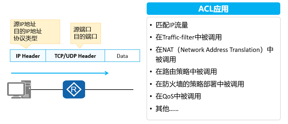 ACL可以通过对网络中报文流的精确识别,与其他技术结合,达到控制网络访问行为、防止网络攻击和提高网络带宽利用率的目的,从而切实保障网络环境的安全性和网络服务质量的可靠性。