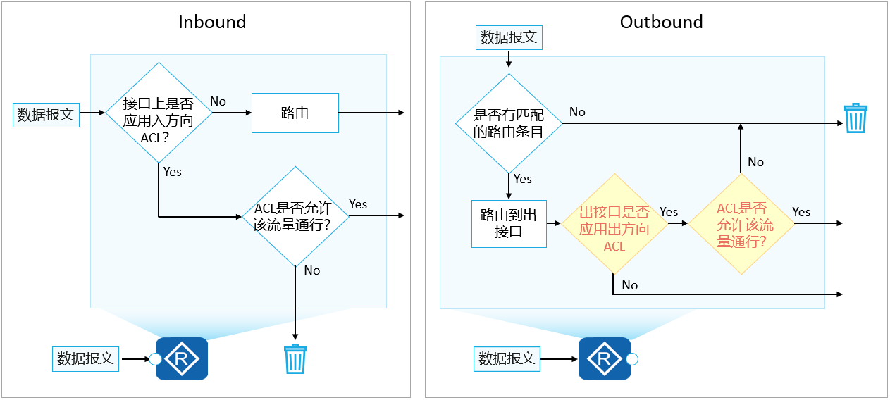 - ACL匹配规则有两种,默认规则下按rule ID从小到大匹配具体看ACL的匹配机制