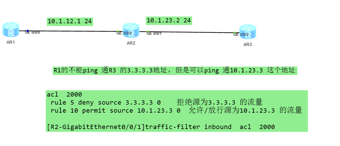 - 案例1:使R1的1.1.1.1不能平通R3但允许10.1.12.1ping通R3